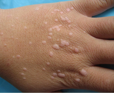 还有就是搔刮法来去除疣体,不少患者不了解该病的自身传染性,时常有意无意地搔抓患处,想把疹子去除,反而致使疹子越来越多,甚至沿抓痕呈线状排列或密集成片,部分游医采用搔刮法去除疣体使得病情变得越来越重。因为疹子中有大量活跃的病毒,当搔抓局部时,疹子表面和正常皮肤就可产生轻微的破损,这时病毒很容易被接种到正常皮肤上而产生新的疣体。同时扁平疣是有传染性的,不过几率不大,有外伤的人容易传染。