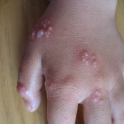 2、丘疹,簇状分布而不融合,继之迅速变为水疱,疱壁紧张发亮,疱液澄清,外周绕以红晕,各簇水疱群间皮肤正常;皮损沿某一周围神经呈带状排列,多发生在身体的一侧,一般不超过正中线。神经痛为本病特征之一,可在发病前或伴随皮损出现,老年患者常较为剧烈。病程一般2~3周,老年人为3~4周,水疱干涸、结痂脱落后留有暂时性淡红斑或色素沉着。
