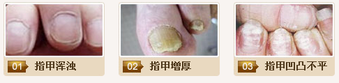 增厚:真菌侵入甲板或甲床后,甲板中的角质物受到真菌的作用而高度增殖,角质物的堆积使甲板增厚。甲板的增厚也加深了甲床混浊程度,一般它可以比正常甲板厚出1~3倍以上。